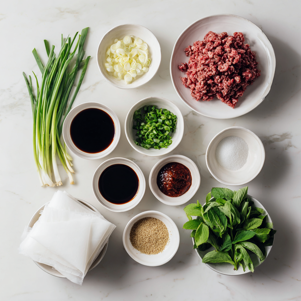 Heat a non-stick skillet over medium-high heat. Add the seasoned beef mixture and cook for 6–8 minutes, breaking it up with a spatula, until fully cooked but still juicy. Remove from heat and let it cool slightly. - Prepare Rice Paper Sheets: