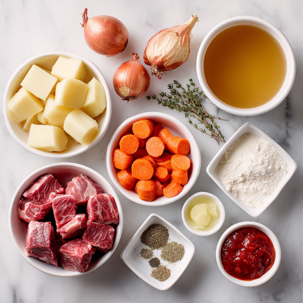 Every ingredient plays a role. Beef chuck becomes melt-in-your-mouth tender with slow cooking. Flour thickens the stew naturally. Tomato paste adds depth without overpowering. Potatoes and carrots absorb flavor while helping make the stew hearty and filling.