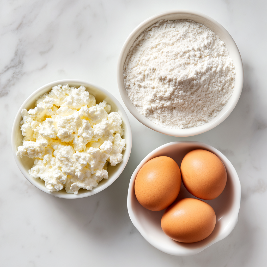 - Mix cottage cheese, eggs, and self-rising flour until sticky dough forms.