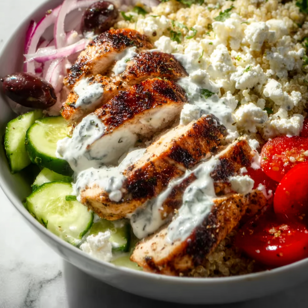 Greek Chicken Bowls are a fresh, balanced, and nutrient-packed meal that’s perfect for lunch or dinner. With tender, marinated chicken, fresh vegetables, protein-packed grains, and creamy tzatziki, these bowls are not only delicious but also wholesome and satisfying.