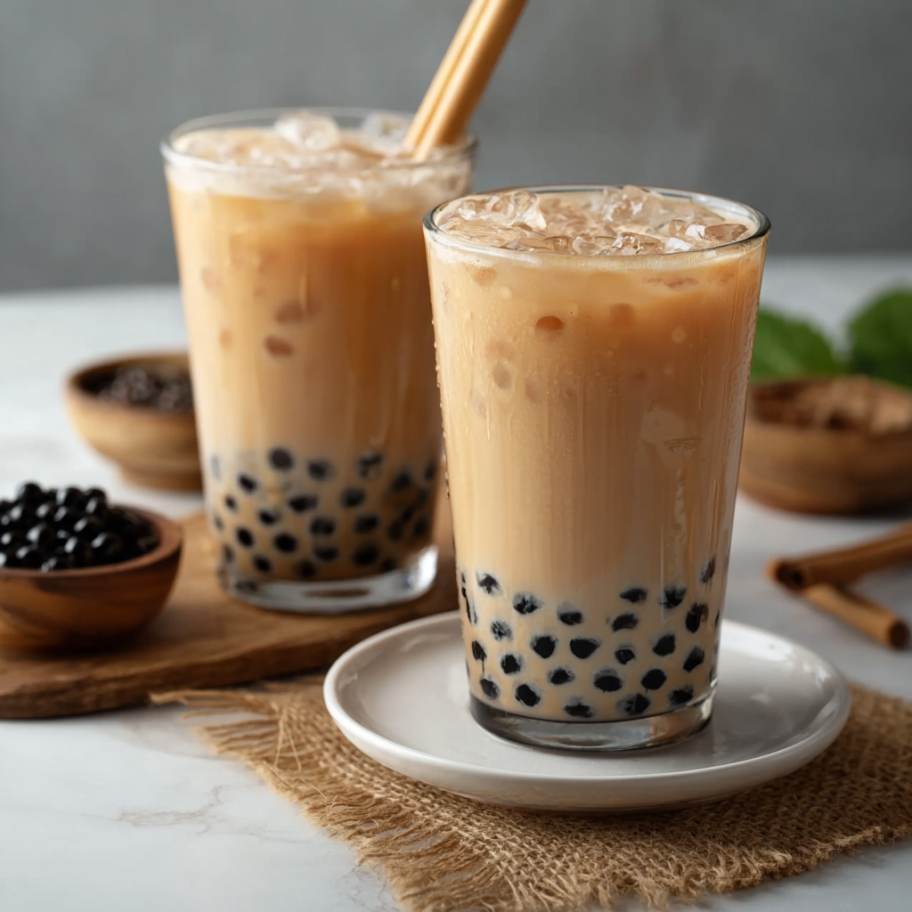 Can I make boba pearls from scratch? Yes, but it’s time-intensive involving cassava starch dough shaping—store-bought dried pearls are far easier for beginners. How long do cooked pearls last? Best within 4 hours at room temp or 24 hours refrigerated in syrup. Can I use instant tea? Yes, but brew stronger to compensate for flavor dilution. Is this recipe gluten-free? Typically yes, as tapioca and tea are naturally gluten-free—check milk and sugar labels. Why is my boba hard? It may need longer cooking or wasn’t soaked properly in syrup.