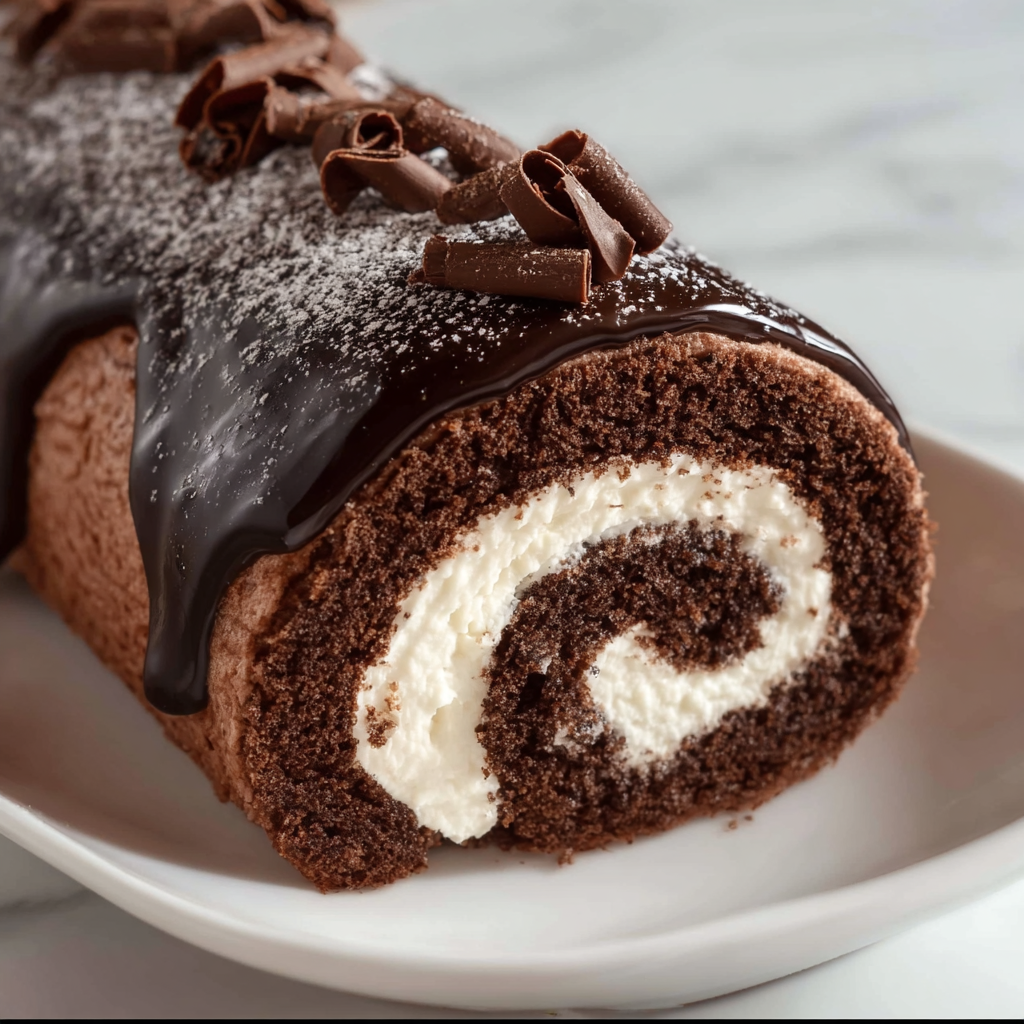 Chocolate Cake Roll with Creamy Filling & Rich Ganache