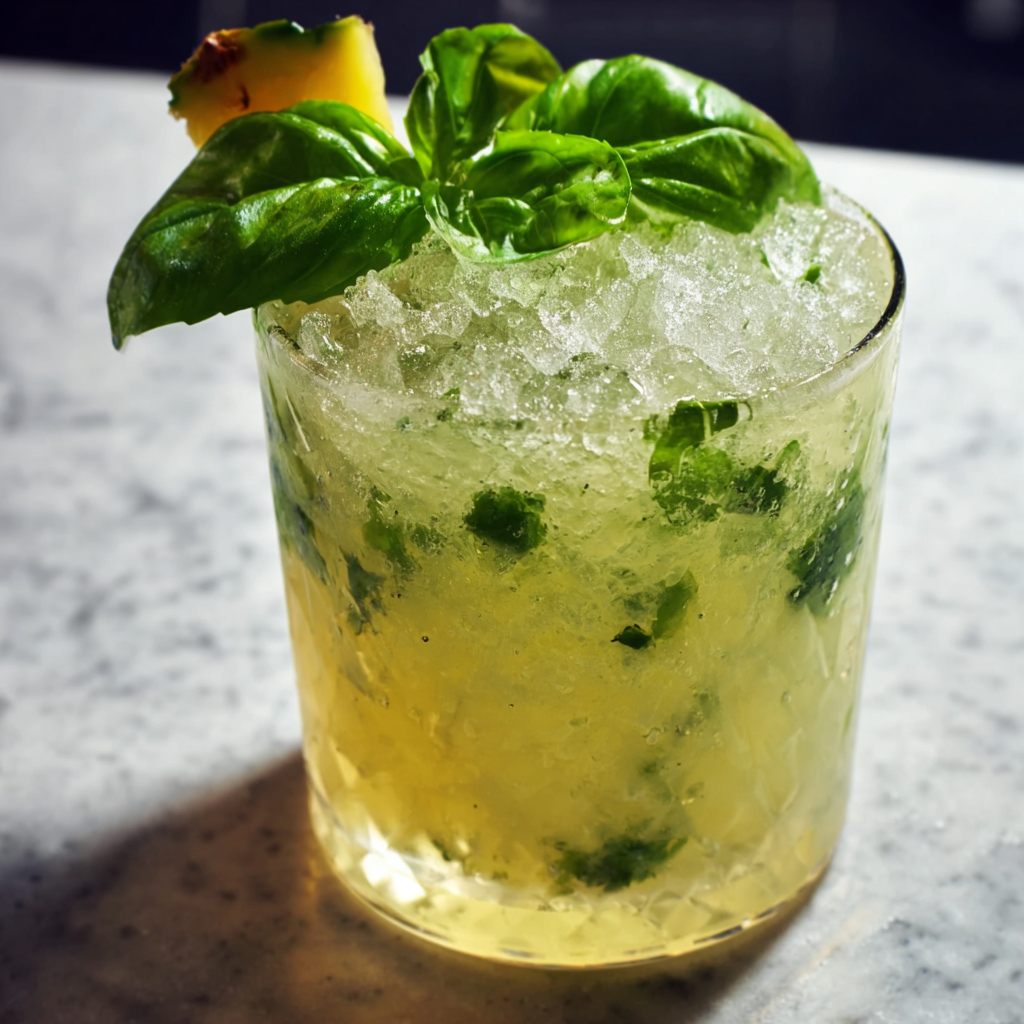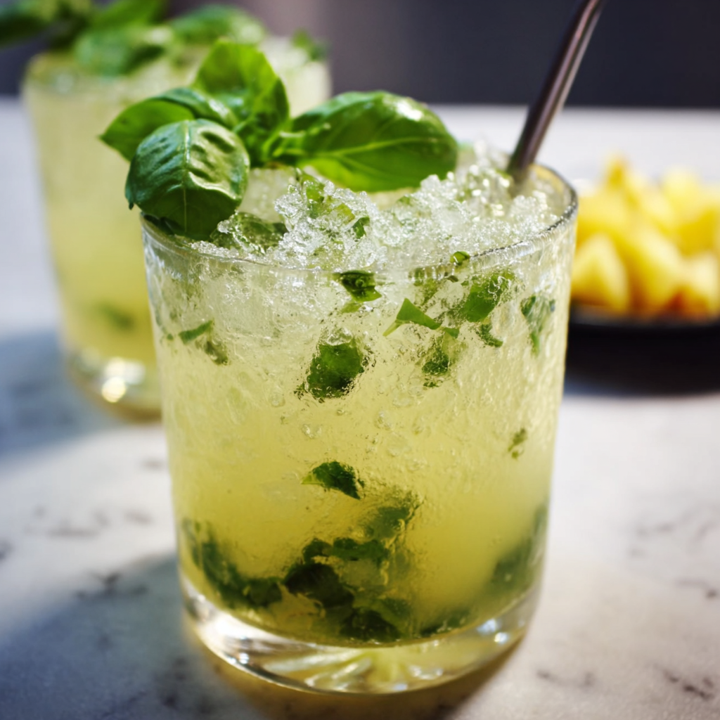 Herb-fruit combinations are common in tropical and modern mixology, blending freshness with sweetness. Pineapple brings island-inspired flavor, while basil adds Mediterranean herbal elegance—making this drink feel global and modern.
