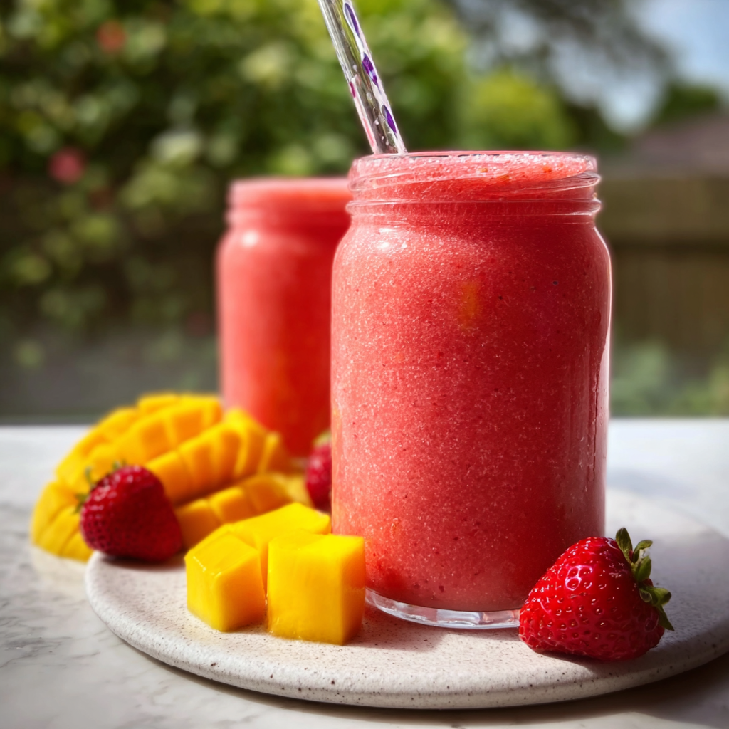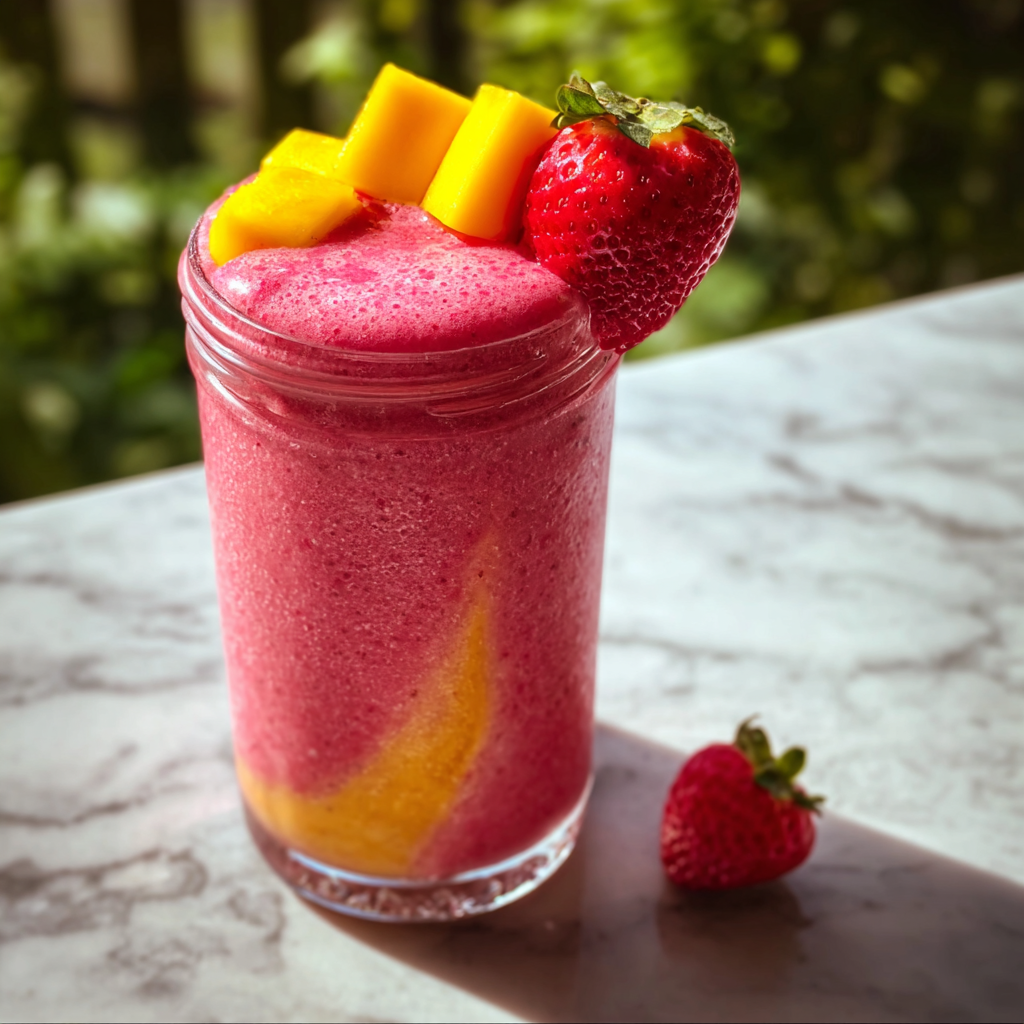 Strawberries and mangoes complement each other beautifully. Strawberries bring brightness and gentle acidity, while mango adds body, creaminess, and tropical sweetness. Together, they create a smoothie that’s: