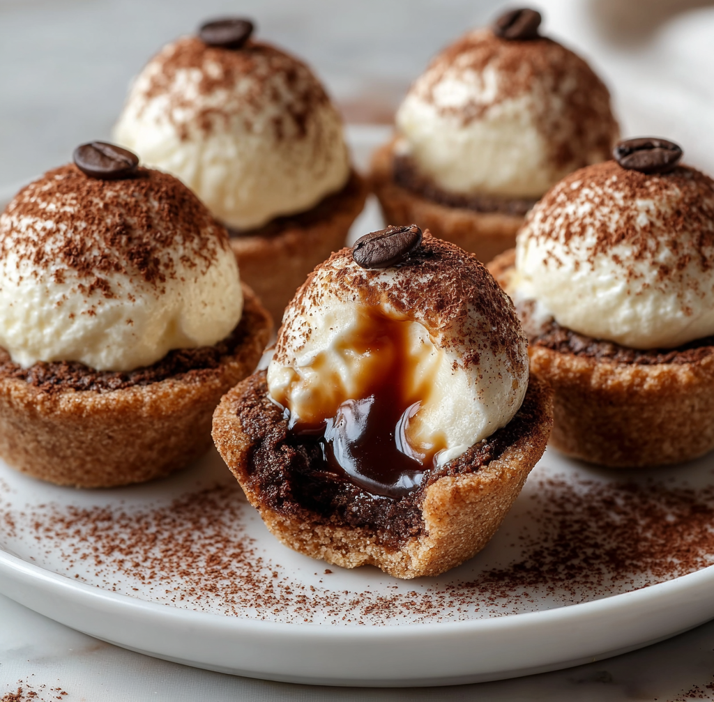 Instead of layering, the flavors are nestled together: a soft cookie base holds the rich mascarpone filling, lightly flavored with espresso and vanilla. A dusting of cocoa powder completes the experience, delivering that unmistakable tiramisu aroma and taste.
