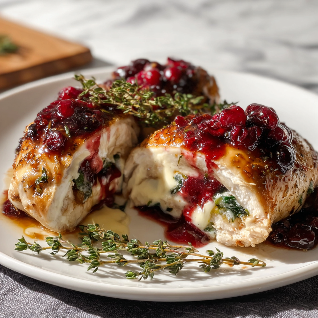 A show-stopping chicken dish stuffed with creamy brie and tangy cranberries, perfect for holidays and special occasions.