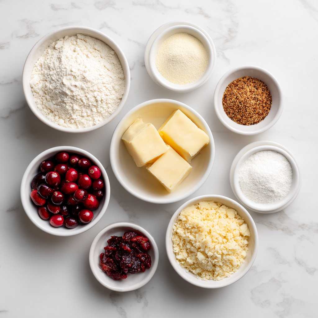 To make this orange cranberry shortbread, you’ll need high-quality ingredients for the best results. We’ve kept the list simple, focusing on fresh flavors to ensure that melt-in-mouth texture shines through.