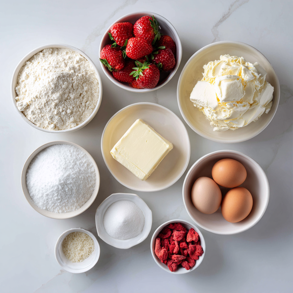 - In a medium bowl, whisk flour, baking powder, salt, and crushed freeze-dried strawberries.