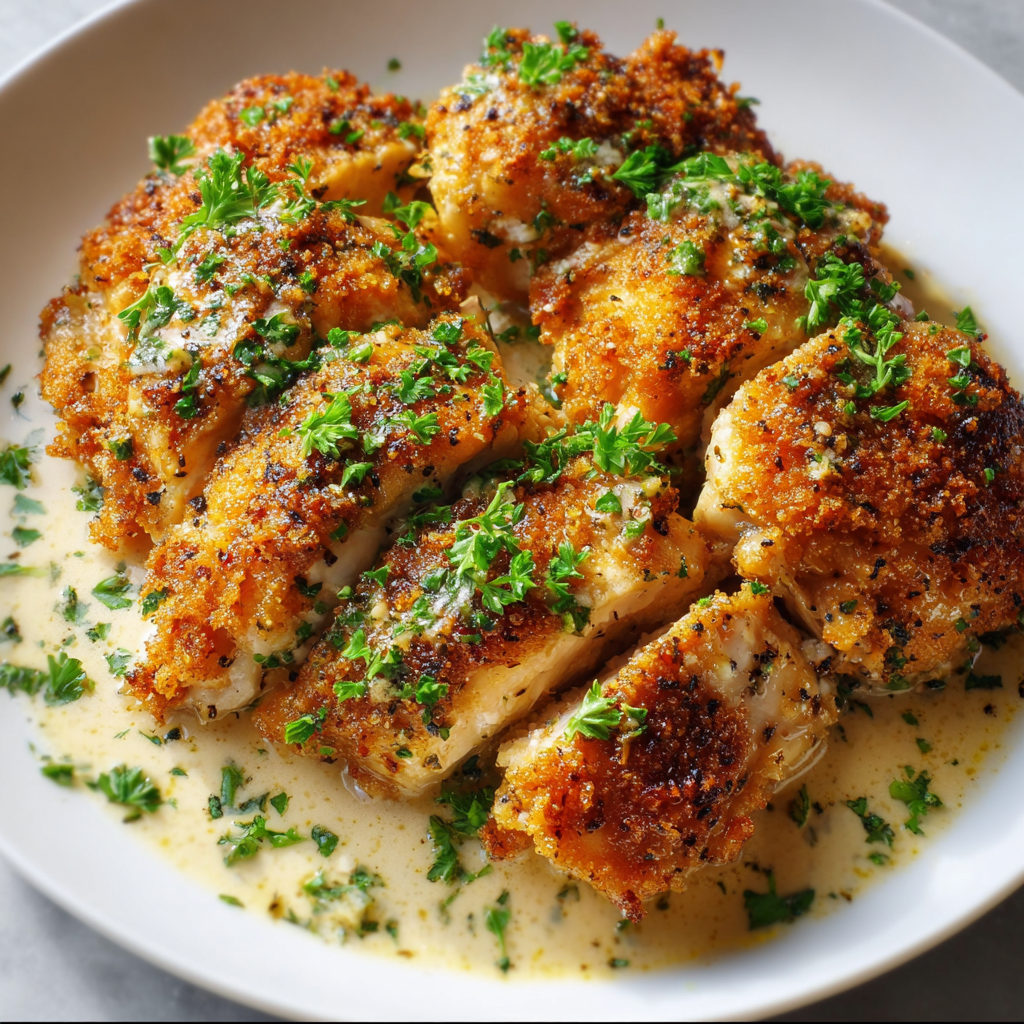 The beauty of this dish is its balance: crispy exterior meets succulent interior, while garlic and butter create a deeply savory, slightly sweet aroma that fills the kitchen and entices the senses. Perfect with sides like roasted vegetables, mashed potatoes, or a crisp green salad, it’s a dish that impresses every time.