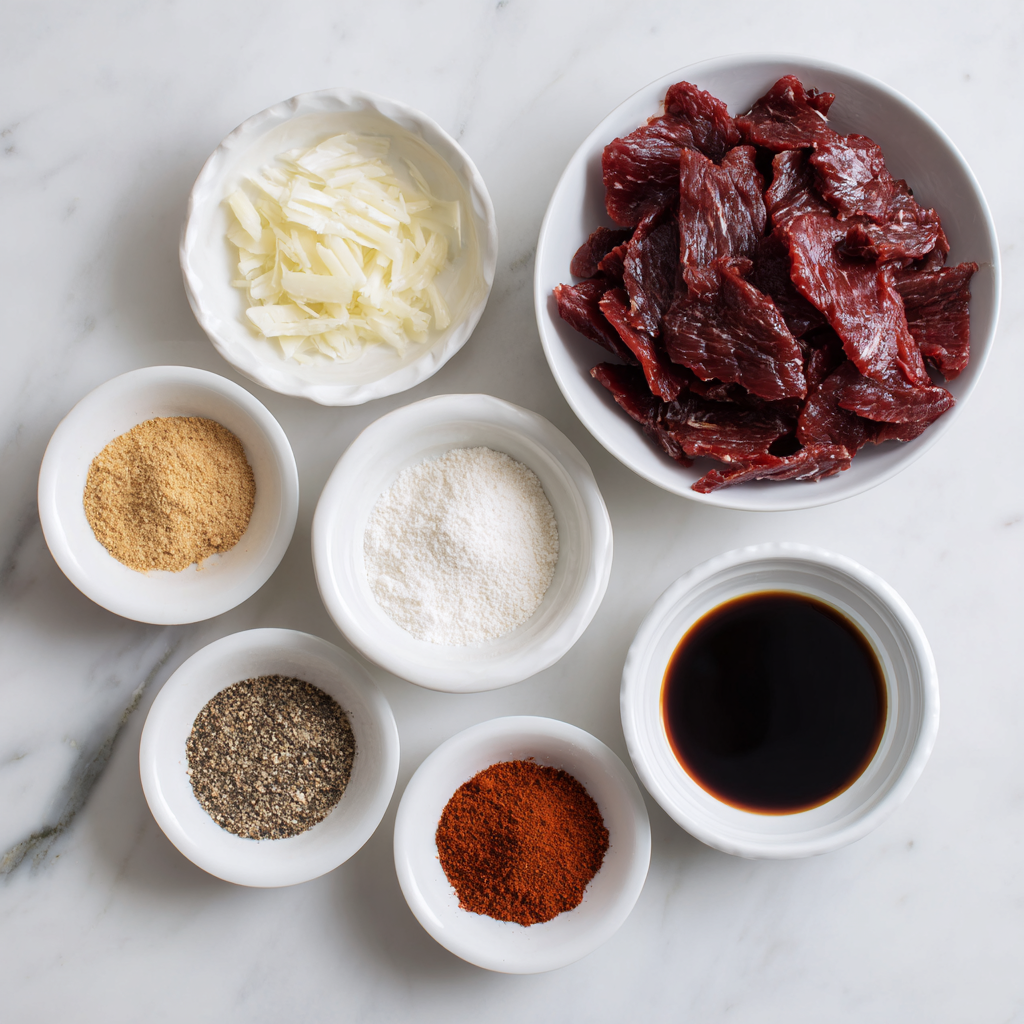 - Marinate: In a bowl, whisk together soy sauce, Worcestershire sauce, honey, smoked paprika, garlic powder, onion powder, black pepper, and optional red pepper flakes. Add beef strips and coat evenly. Cover and refrigerate for at least 4 hours or overnight for best flavor.