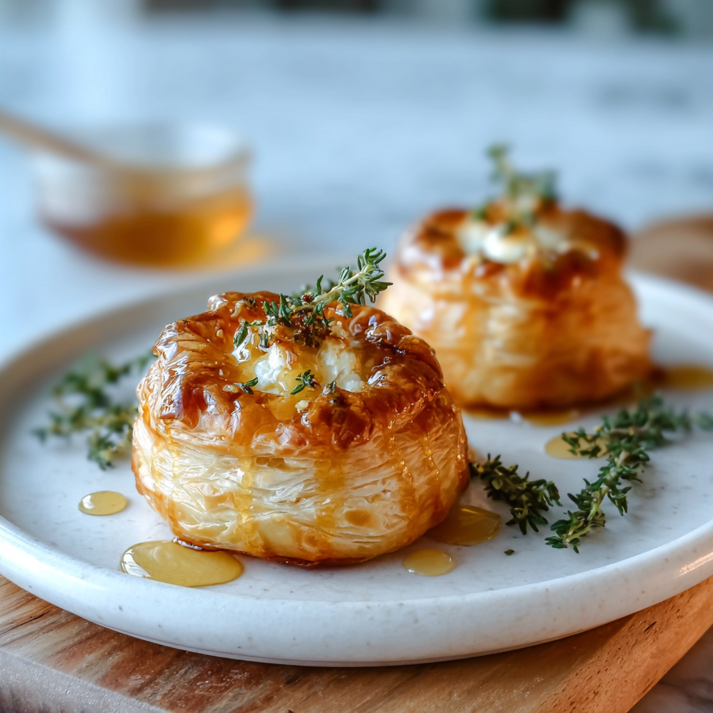 Goat cheese and honey is a timeless combination found across Mediterranean cuisine, from French chèvre to Italian goat cheese desserts. Using puff pastry to encase the filling adds a French patisserie-inspired touch, turning a simple flavor pairing into an elegant appetizer suitable for entertaining.