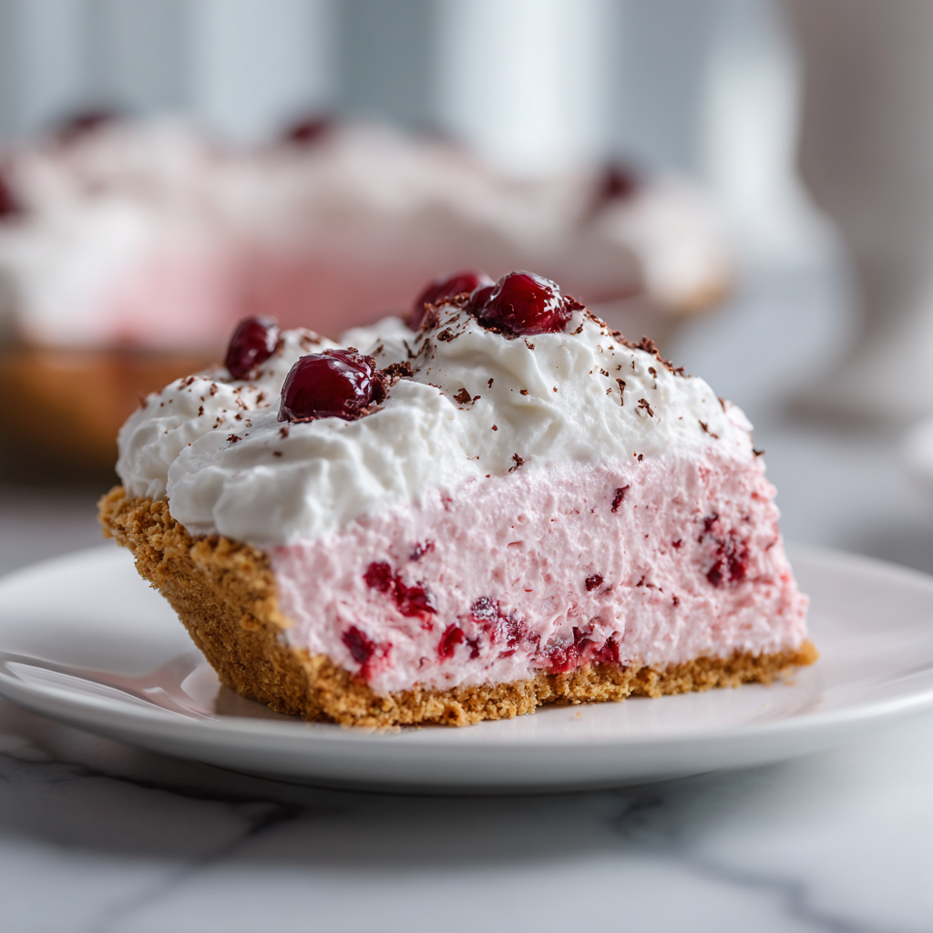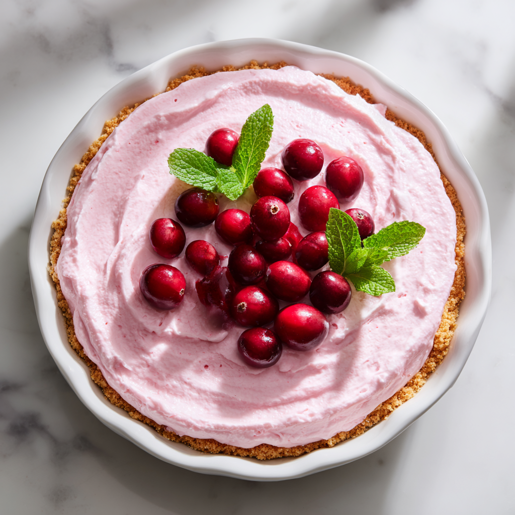 A light and airy no-bake cranberry pie with a buttery crust, perfect for holidays or special occasions.