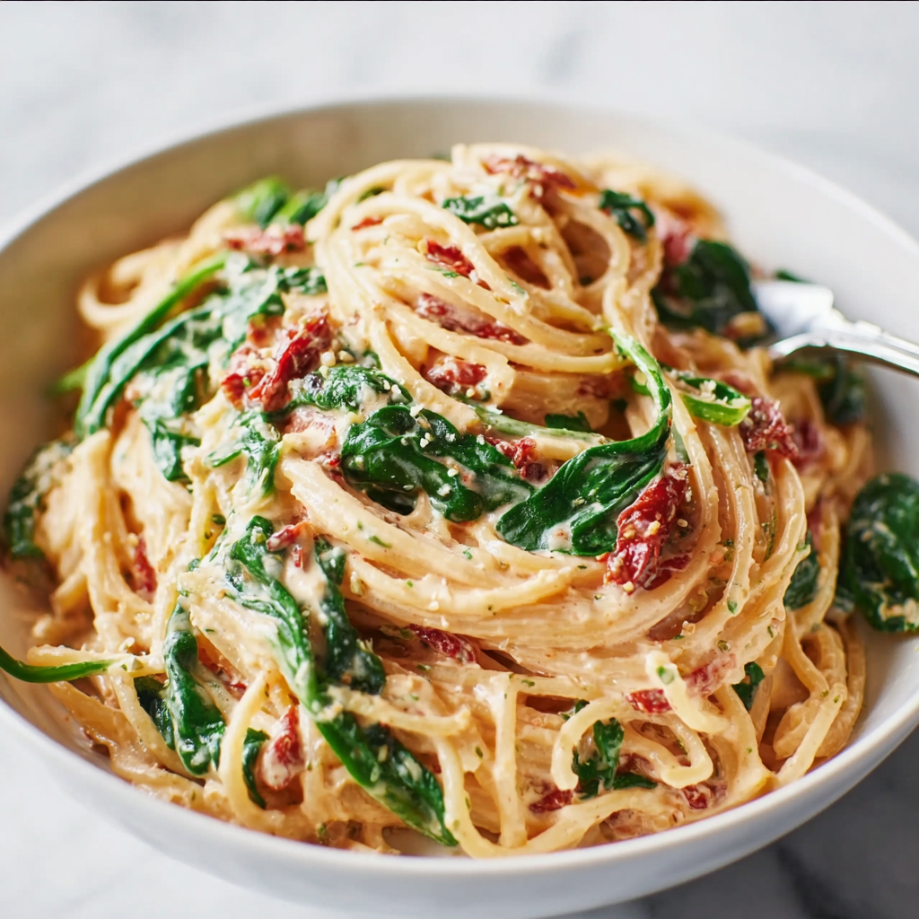 Spaghetti & Spinach with Sun-Dried Tomato Cream Sauce