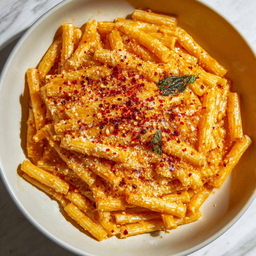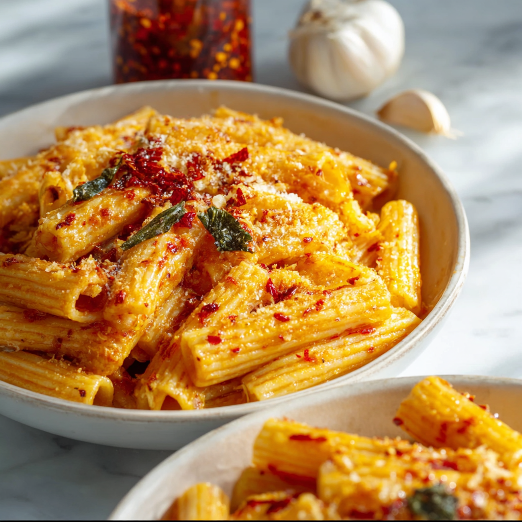 This Creamy Chili Oil Pasta delivers everything people loved about the original — silky texture, gentle heat, rich depth — while keeping the ingredient list simple, accessible, and weeknight-friendly.