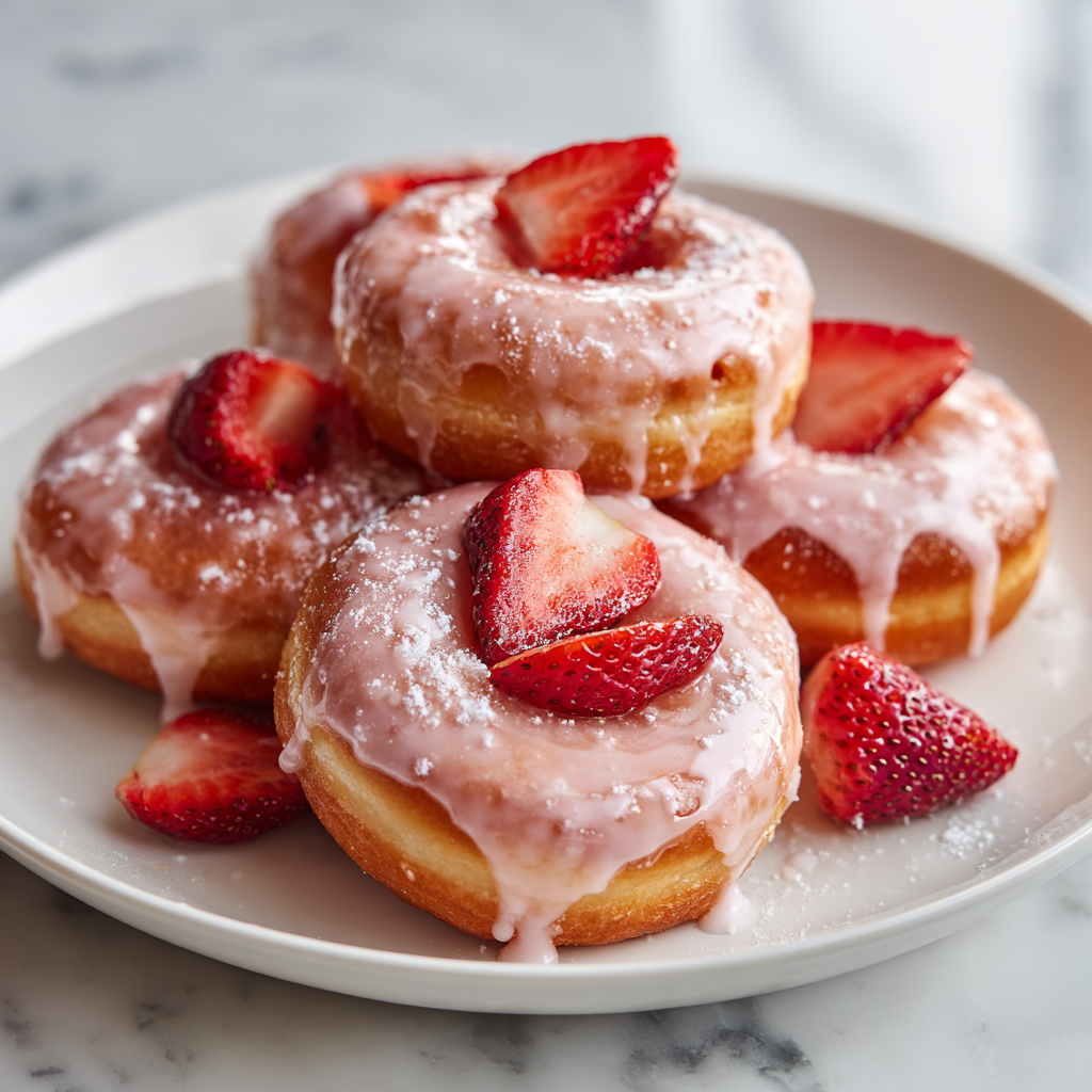 Using fresh strawberries in both the batter and glaze gives these donuts natural sweetness, moisture, and beautiful color. Baking instead of frying makes them lighter, while the fresh strawberry glaze adds an irresistible fruity finish that makes each bite indulgent yet fresh.