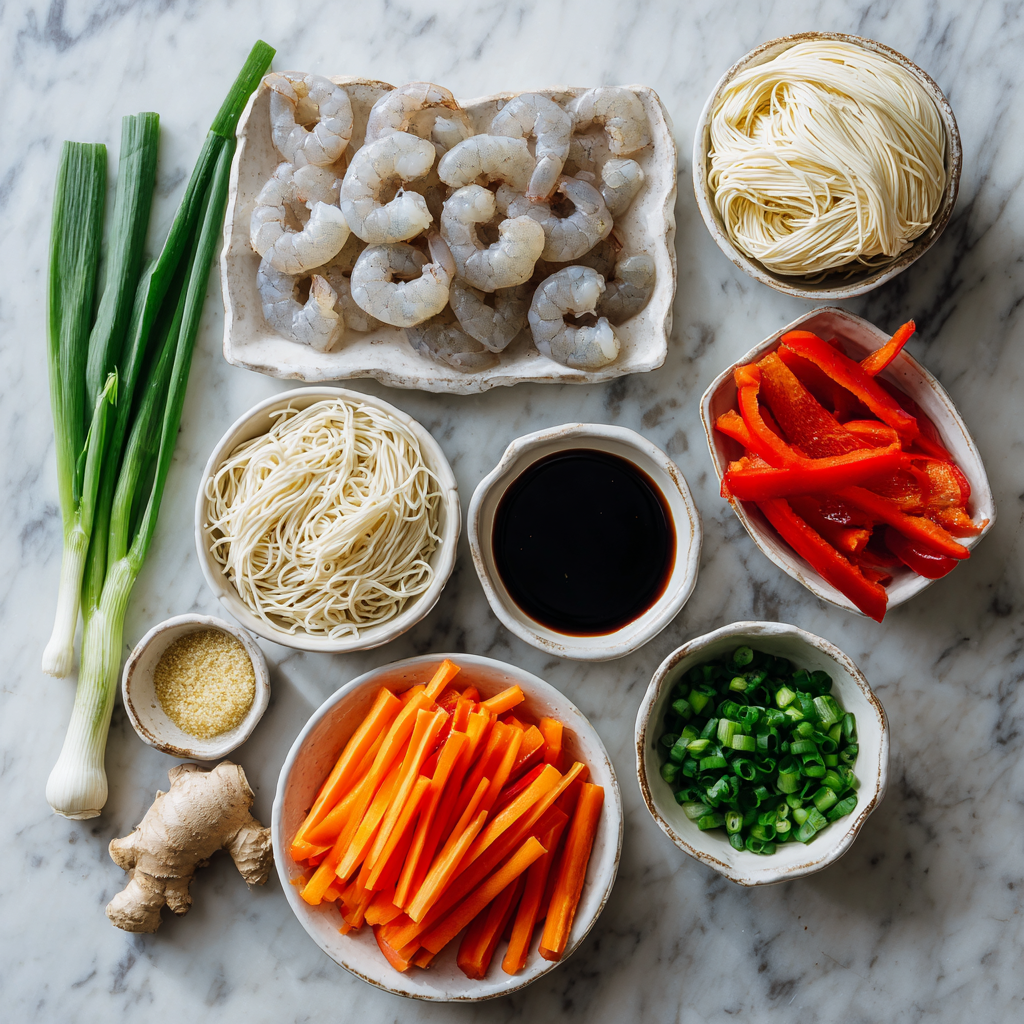 The combination of garlic, ginger, soy sauce, and sesame oil creates authentic Chinese-inspired flavor in minutes. Using prepped noodles and quick-cooking shrimp keeps it fast while delivering rich, takeout-style taste.