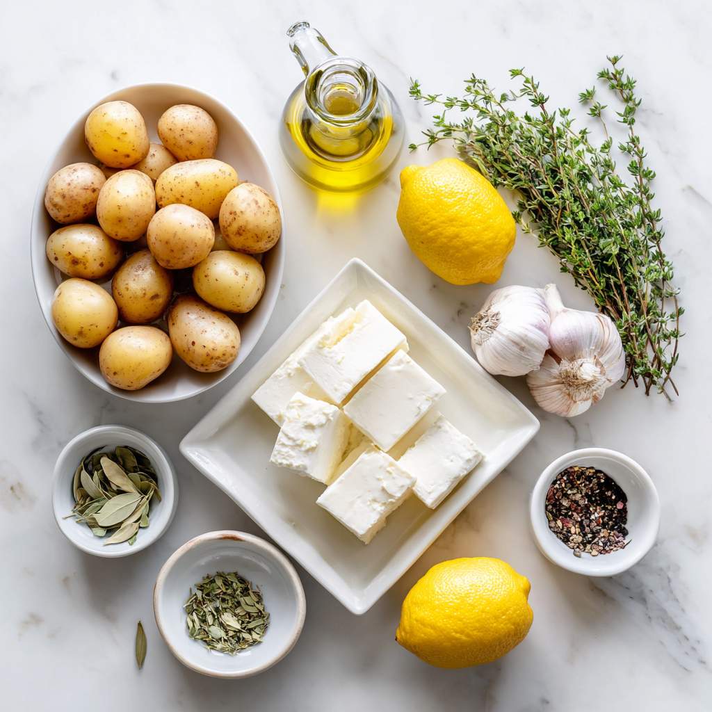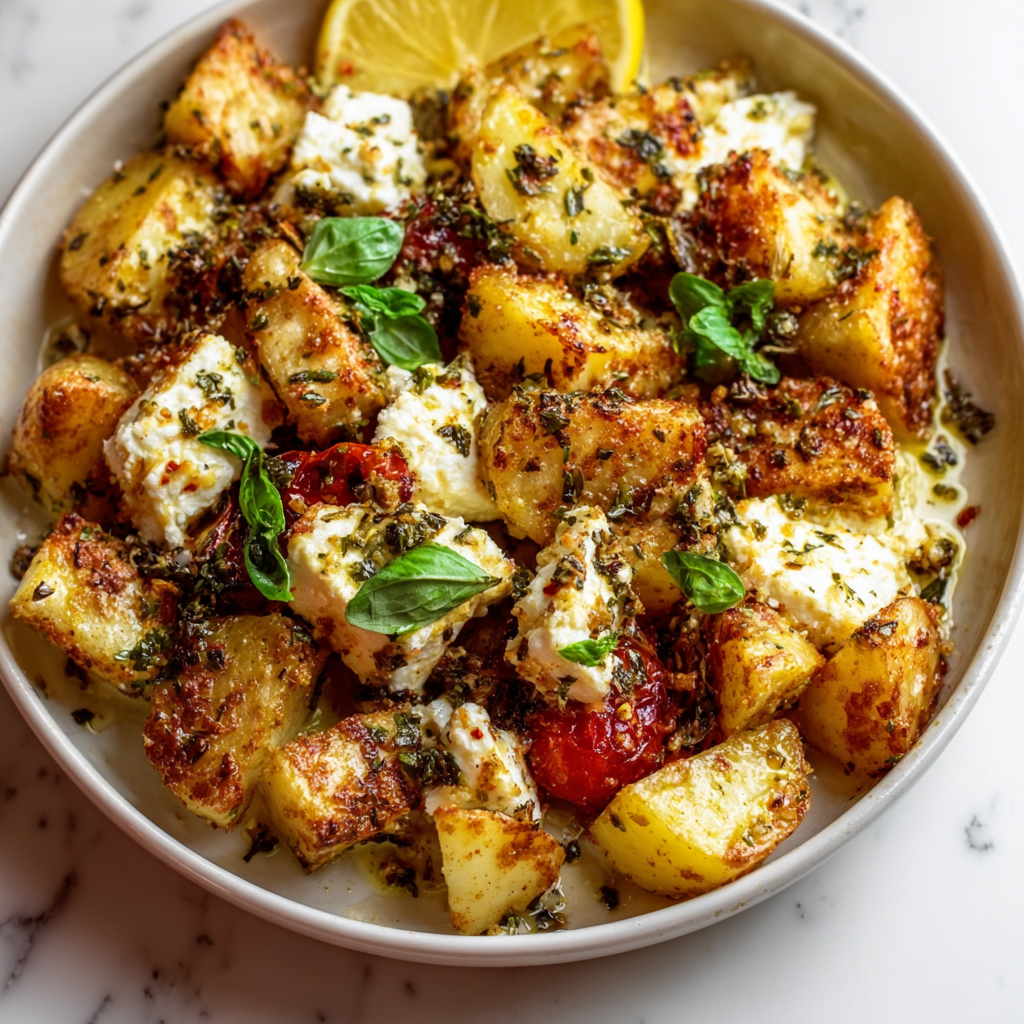 Potatoes may seem like a New World ingredient, but they’ve been embraced in Mediterranean cuisine for centuries. In Greece, roasted potatoes (patates fournou) often feature lemon, garlic, and oregano—hallmarks of this dish. The baked feta element draws from the famous viral baked feta pasta trend, where a block of feta roasts with tomatoes to create a sauce. Here, we’ve adapted it to potatoes for a heartier, starch-forward take.