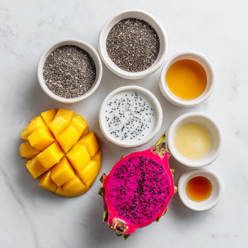 Dragon fruit, also called pitaya, grows on cactus-like plants and comes in pink or white flesh varieties. Mangoes are one of the most consumed fruits worldwide, symbolizing summer in many cultures. Chia seeds were a staple for Aztec warriors for sustained energy. A serving of this pudding delivers ~10g fiber, healthy fats, and vitamins—making it a true superfood treat.