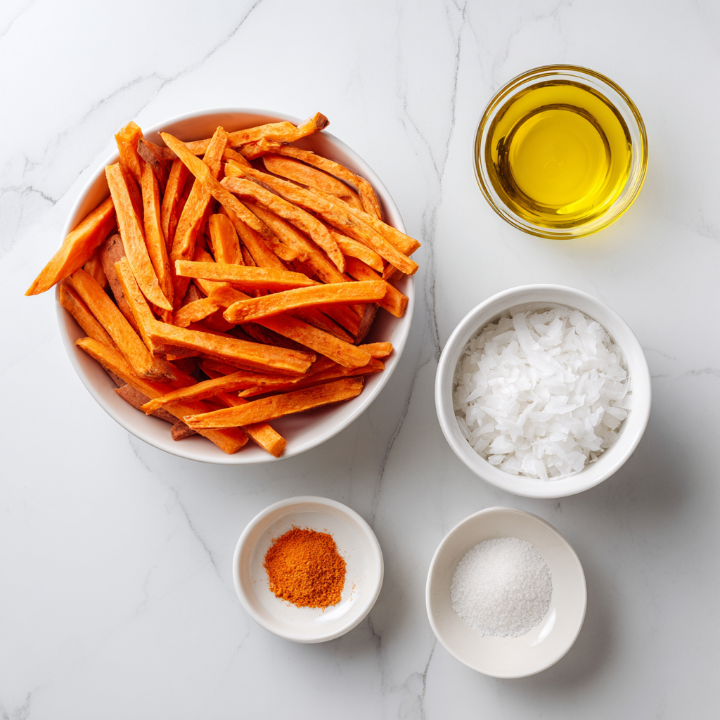 1. Prepare the sweet potatoes: Wash and cut into even fries (about 1/4-1/2 inch thick for best crisp). Thinner fries crisp faster; thicker ones stay fluffier inside.