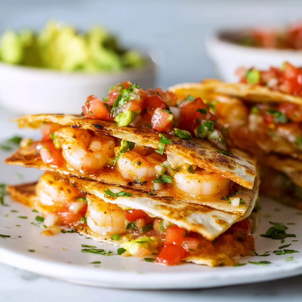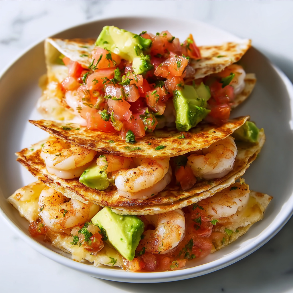 For extra crispy tortillas, use a bit of oil or butter on the skillet. Don’t overfill—too much filling makes them hard to flip. If shrimp are frozen, thaw and pat dry thoroughly to avoid sogginess. For meal prep, cook shrimp and make salsa ahead; assemble and cook fresh. Use a panini press for even melting and crispiness. To boost protein further, add black beans or Greek yogurt in the salsa. Always use ripe but firm avocados to prevent mushiness in the salsa.