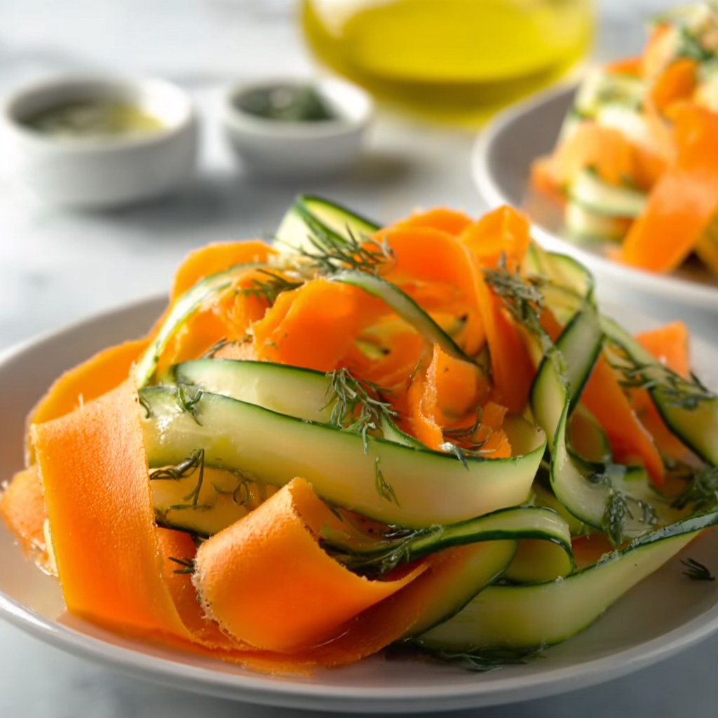 This Carrot & Cucumber Ribbon Salad proves that simple ingredients can create something extraordinary. The elegant ribbons, vibrant colors, and refreshing flavor make it a standout dish for any table.
