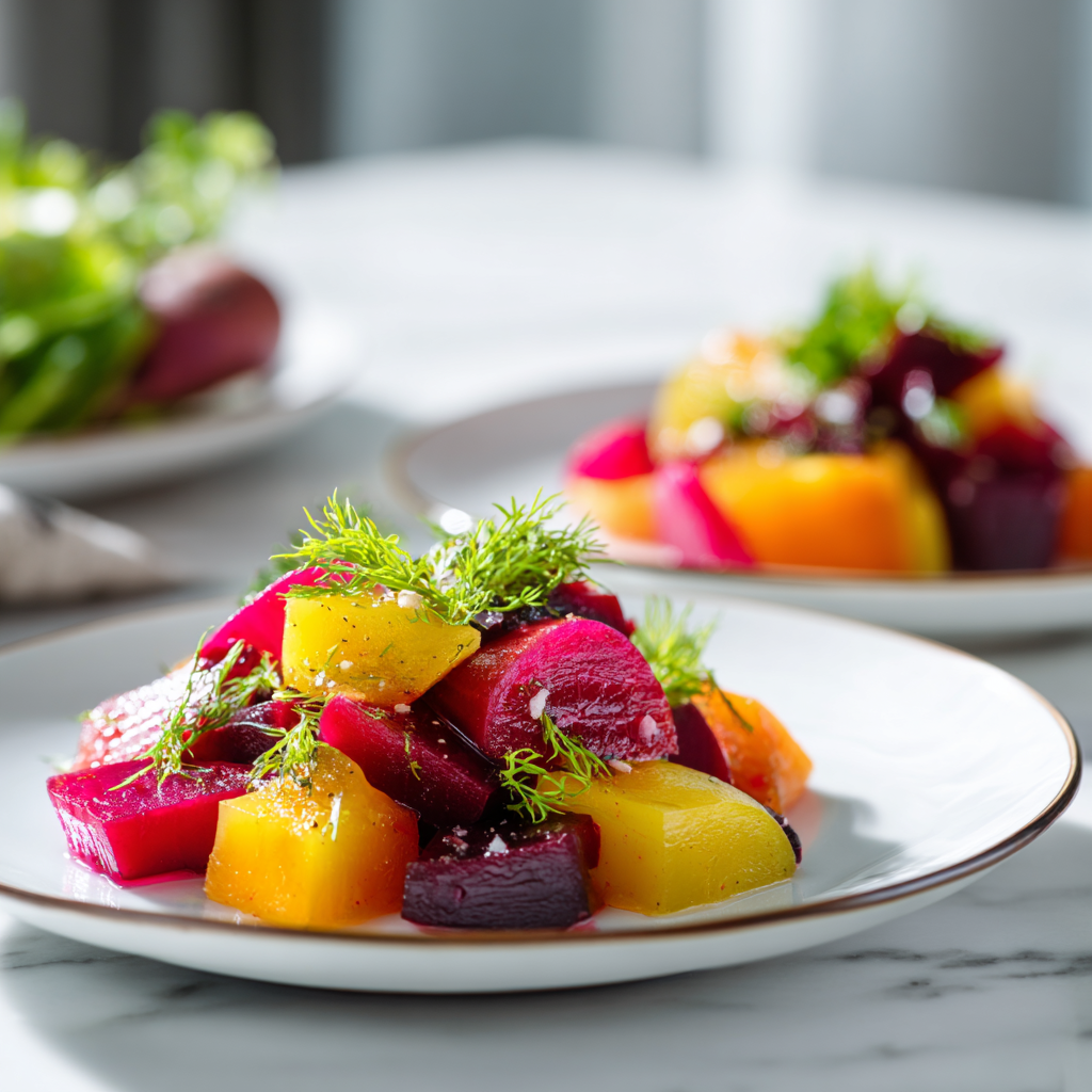 The magic lies in the 15-minute warm pickle: heat loosens the beets just enough to absorb flavor fast without turning them mushy. Apple cider vinegar brings bright tang, a touch of honey or maple adds subtle sweetness to balance the earthiness, and warm spices (mustard seeds, peppercorns) give depth without overpowering. Pair that with peppery arugula, crunchy nuts, and creamy cheese, and you’ve got a salad that’s as beautiful as it is delicious.