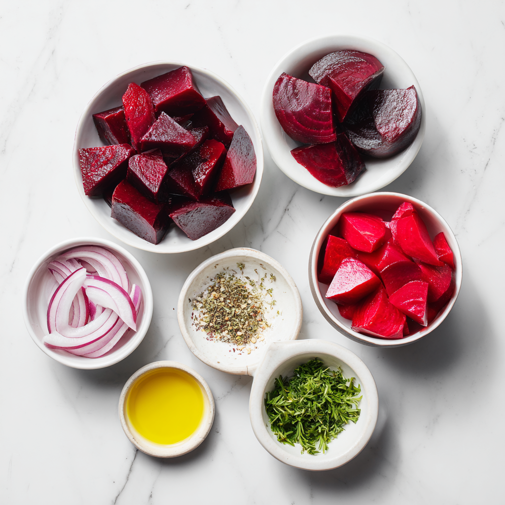 Can I use pre-cooked beets? Yes, but raw beets give the best crisp texture and vibrant color in this quick method. How long do the pickled beets last? Up to 5–7 days in the fridge in the brine. Is it gluten-free? Yes, naturally gluten-free. Can I make it ahead? Pickle the beets up to 2 days ahead; assemble the salad just before serving. Too tangy? Reduce vinegar to ½ cup and increase water, or add extra sweetener.