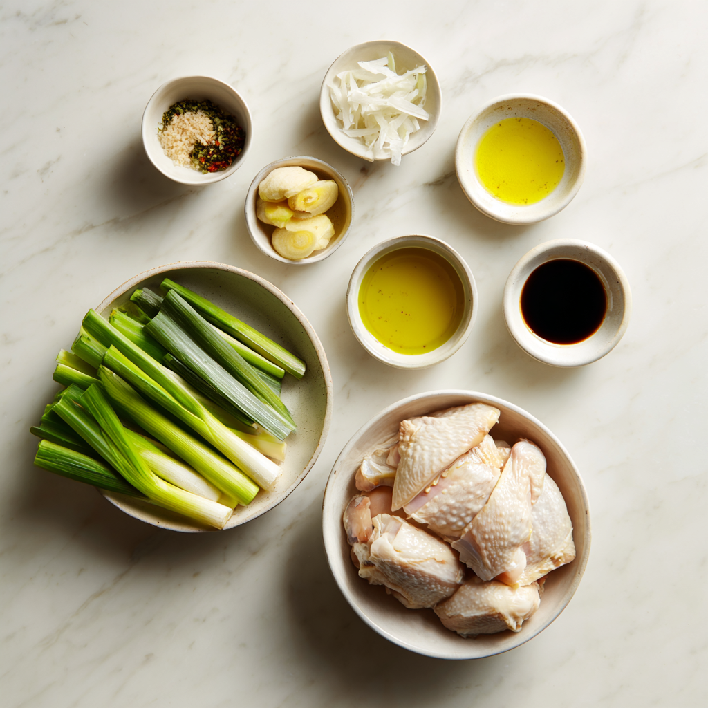 - Rinse and pat the chicken dry. In a bowl, toss chicken with Shaoxing wine, light soy sauce, sesame oil, salt, white pepper, and half the sliced ginger. Let marinate 15–30 minutes (or up to 2 hours in the fridge).