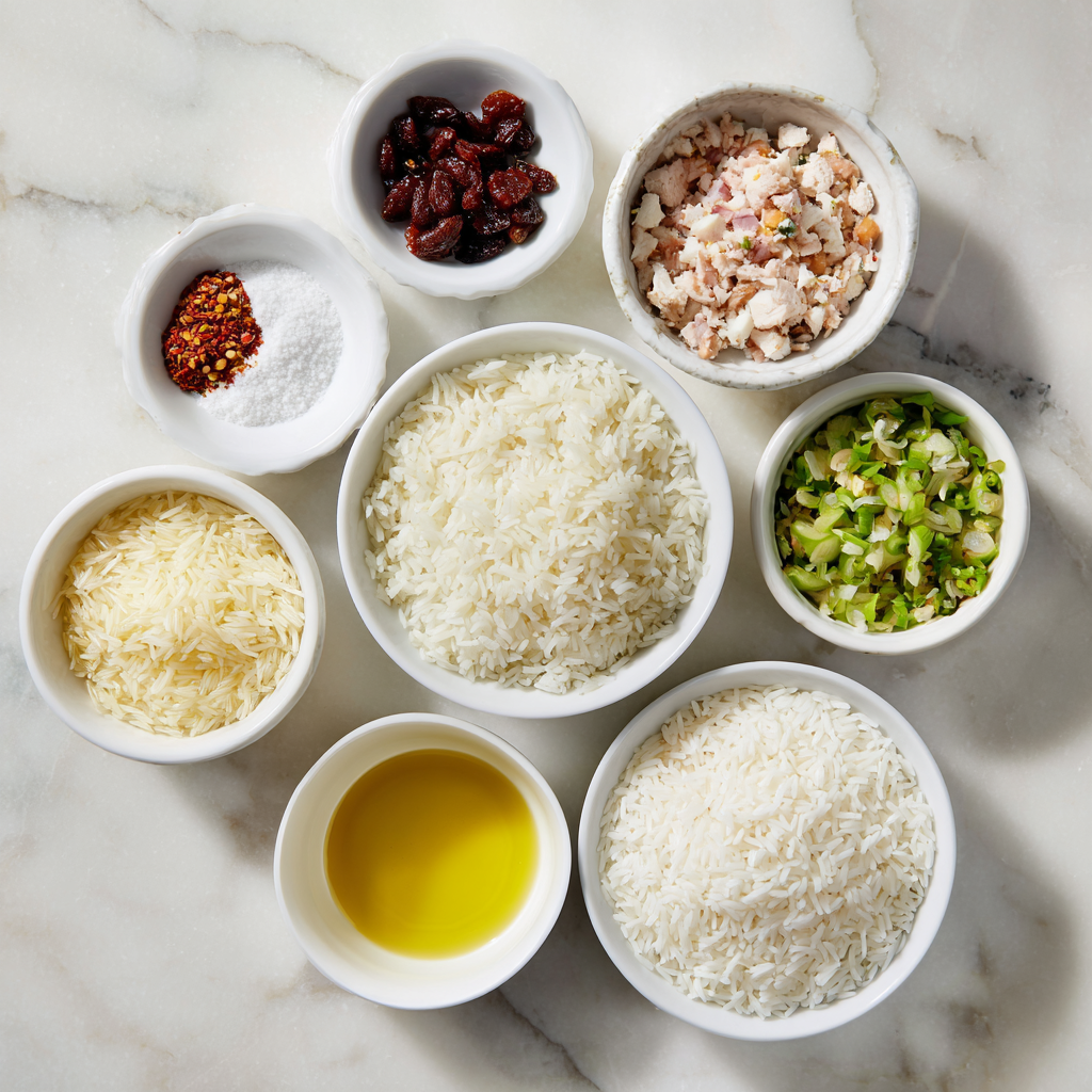 Gather these ingredients for an authentic turkey combo rice experience. This recipe serves 4-6 generously.