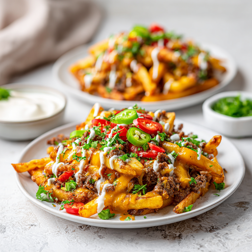 Try a “healthy” version: Use sweet potatoes for a nutrient boost, air-fry instead of deep-fry, and opt for Greek yogurt-based ranch. For international flair, swap Cajun for taco seasoning and add salsa for Mexican-inspired fries. Kids might prefer milder seasoning – omit cayenne. These variations keep the dish exciting, proving why “cajun loaded fries” are so versatile.