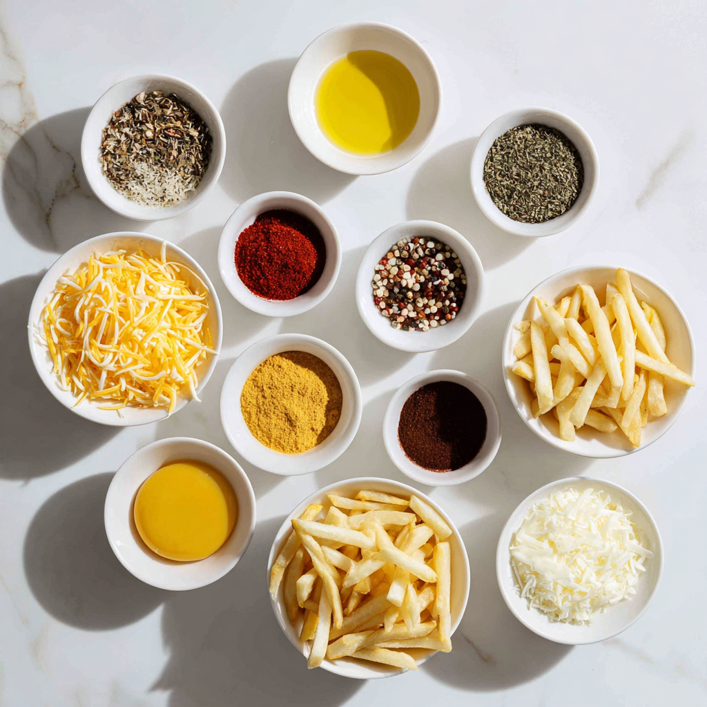 - Make the cheese sauce: While fries cook, prepare the sauce. In a saucepan over medium heat, melt butter, whisk in flour to form a roux (about 1 minute). Gradually add milk, stirring until thickened (2-3 minutes). Remove from heat and stir in shredded cheddar until melted. Season with salt and pepper. Keep warm.