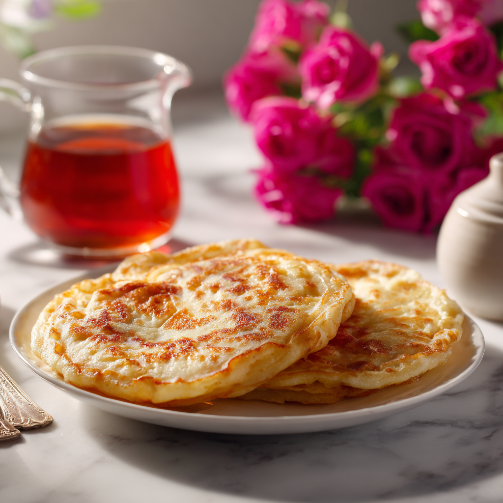 Serve these fragrant breakfast pancakes with a pot of mint tea, Turkish coffee, or rose-infused latte to complement the floral notes. They’re stunning on a brunch table alongside yogurt parfaits, fresh fruit, and pastries. For a romantic breakfast-in-bed, arrange with heart-shaped strawberries and a rose petal sprinkle.