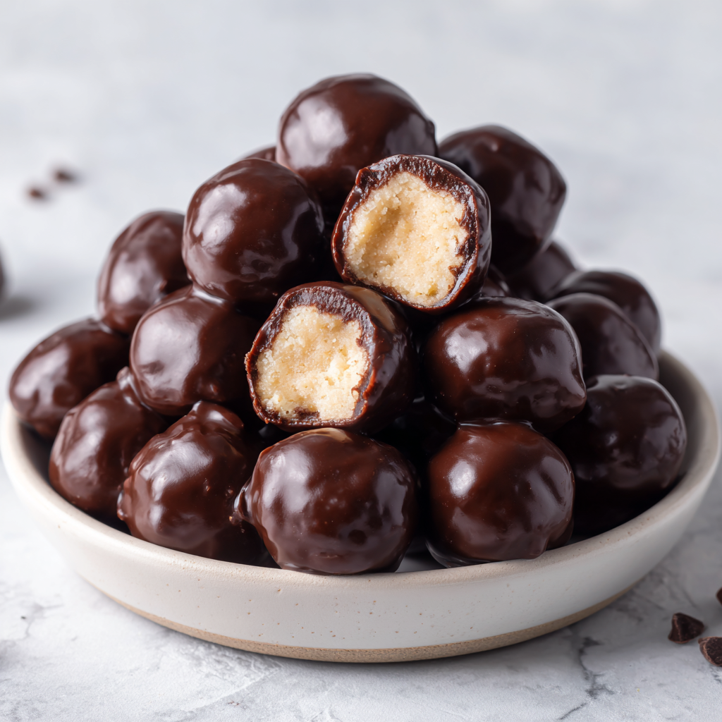 These cookie dough bites are made without eggs, making them safe to enjoy raw. The dough is soft, buttery, and just sweet enough to satisfy cravings. Then, dipped in chocolate, they transform into elegant, bite-sized desserts perfect for parties, gifts, or a simple snack.
