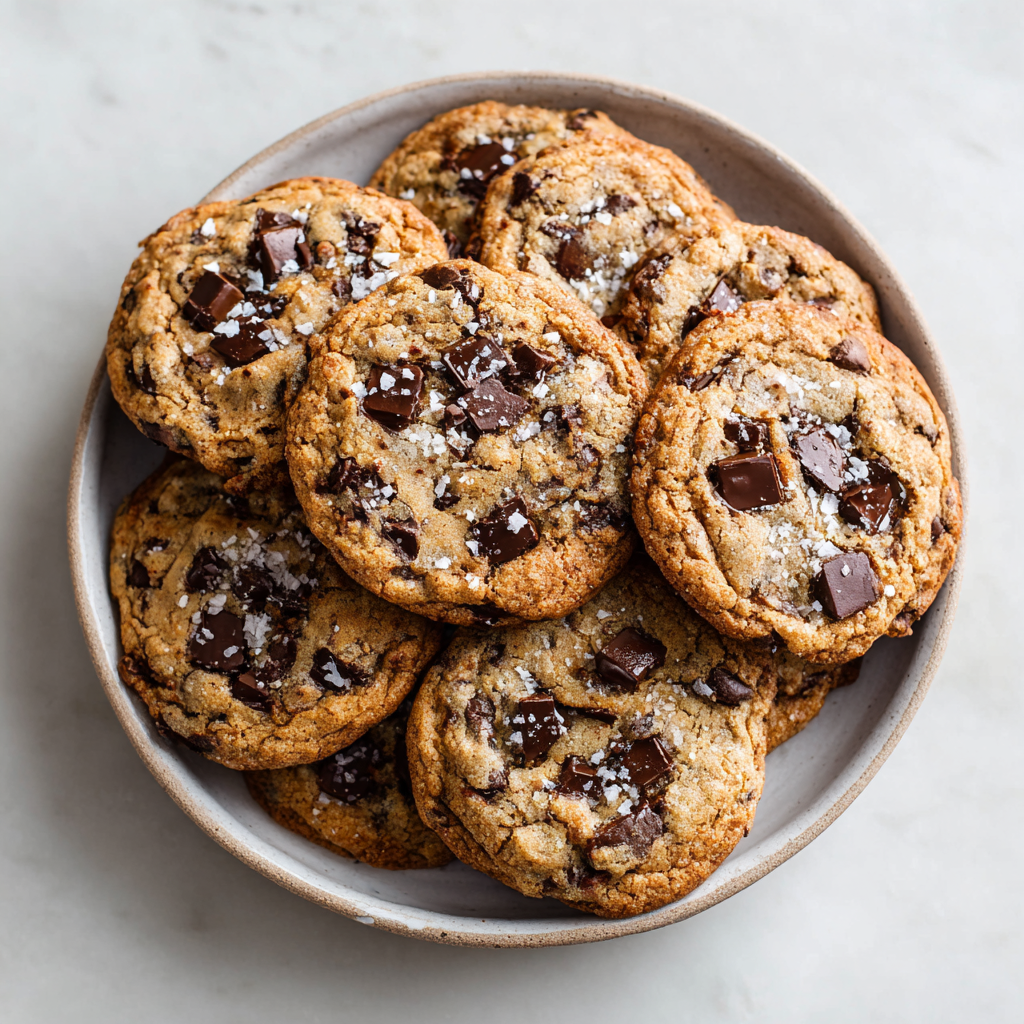 Bakery-style chocolate chip cookies made with brown butter for rich flavor and gooey centers.