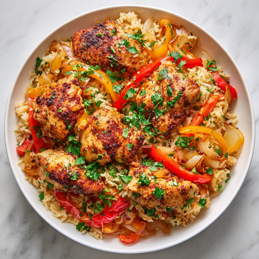 The combination of seasoned chicken, fluffy rice, and colorful vegetables creates a satisfying meal that feels both comforting and exciting. Best of all, everything cooks in one pan, saving you time in the kitchen and making cleanup a breeze.