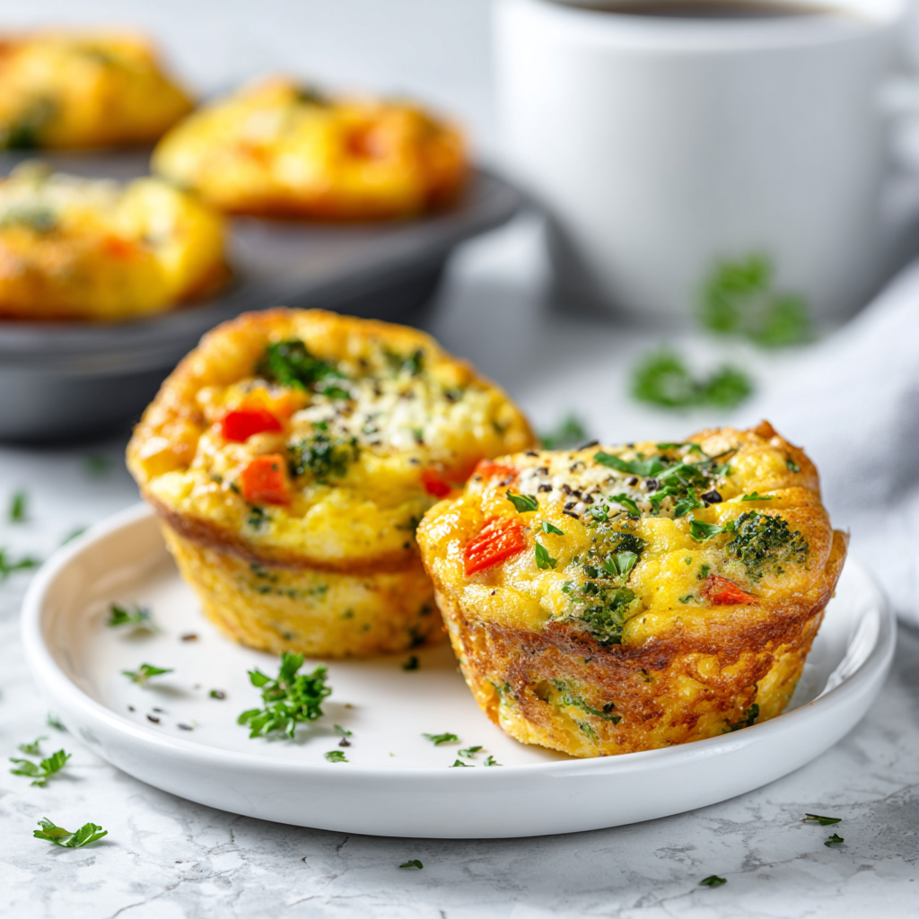 Protein-packed baked egg muffins loaded with vegetables and cheese, perfect for healthy breakfast meal prep.