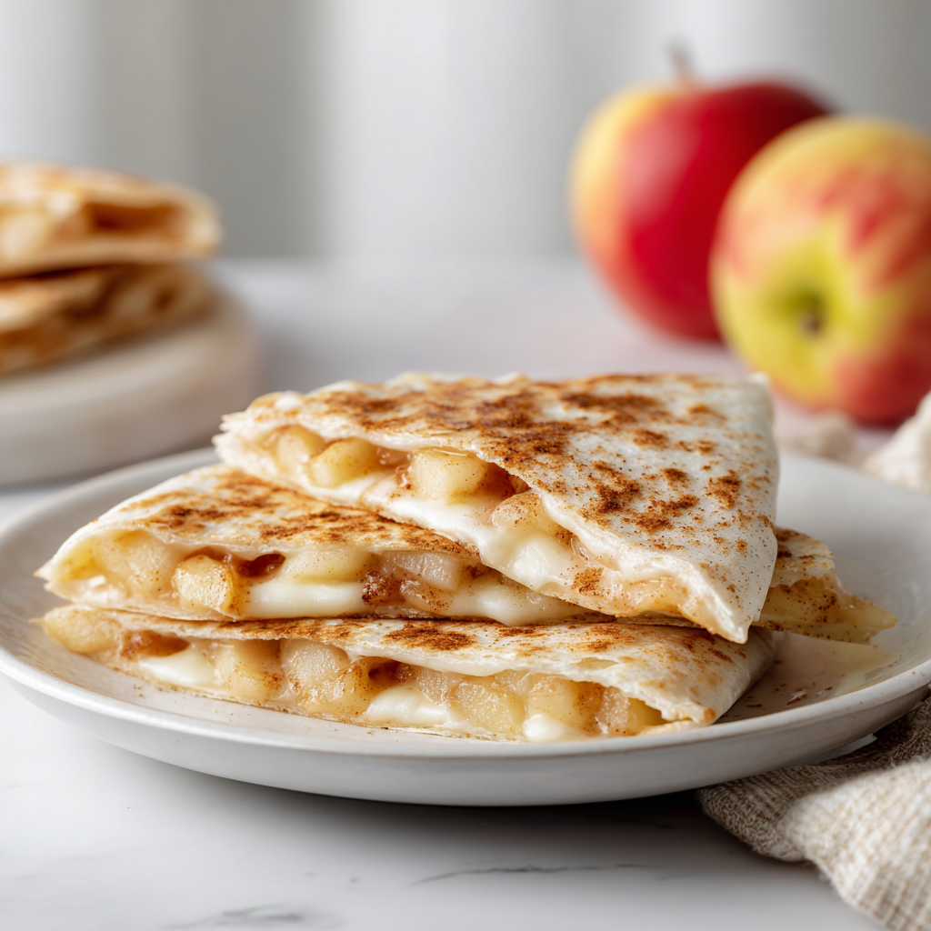 Unlike traditional breakfast dishes that require multiple pans or complicated steps, these quesadillas cook quickly in one skillet. The apples soften into a warm, caramelized filling while the tortilla turns crispy and golden. When sliced into wedges and served with maple syrup or yogurt, the result is a breakfast that feels indulgent but still light and satisfying.
