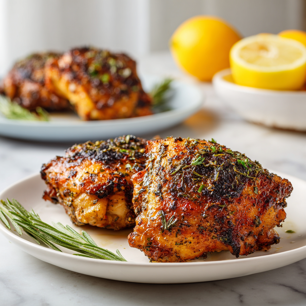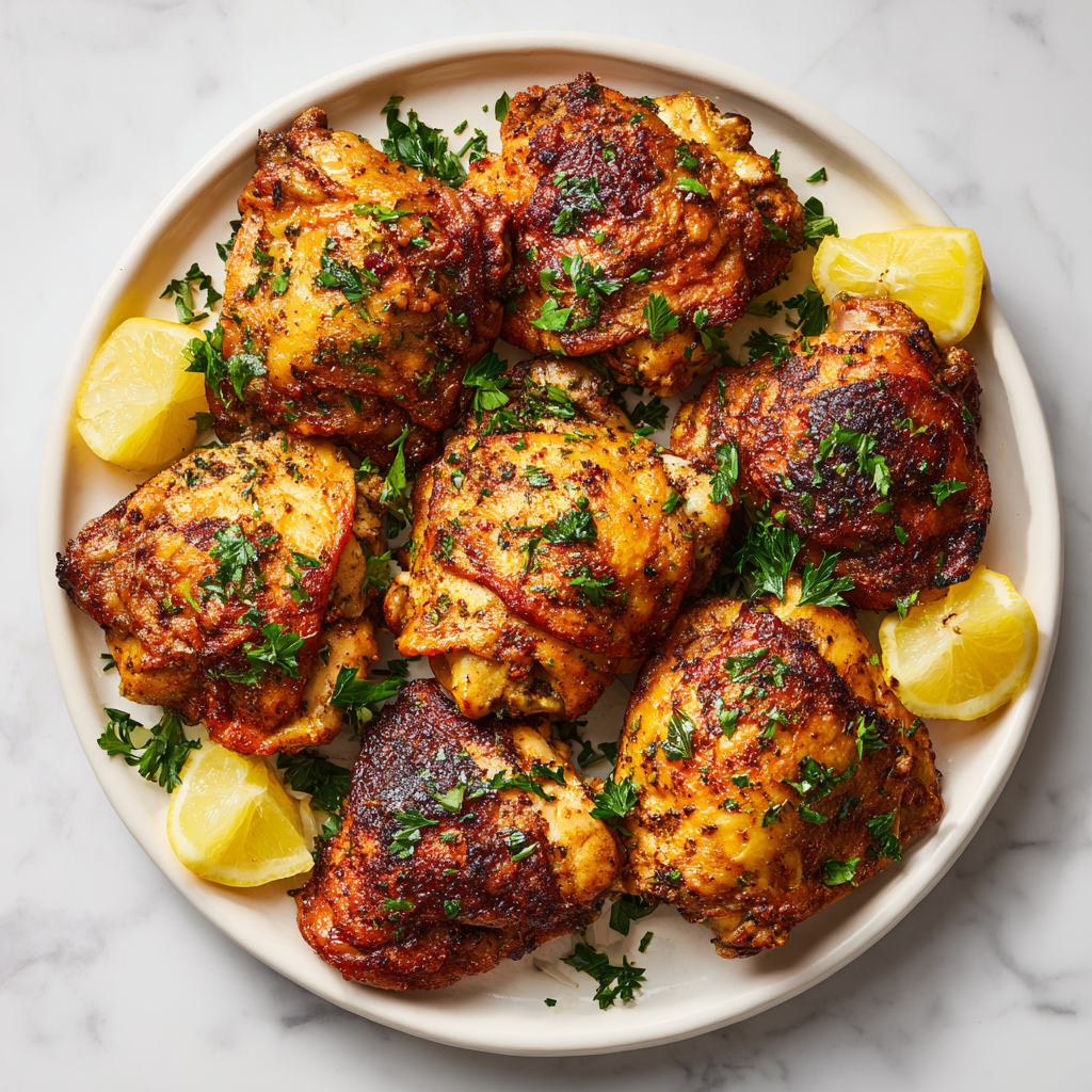 Crispy, juicy chicken thighs cooked in the air fryer with simple spices for a quick and flavorful dinner.