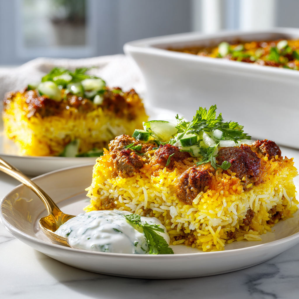 Inspired by flavors from Middle Eastern and Mediterranean kitchens, this recipe layers fluffy basmati rice with a savory mixture of spiced ground meat, caramelized onions, and warming spices like cumin and cinnamon. The result is a golden, aromatic casserole that fills your kitchen with irresistible fragrance while baking.