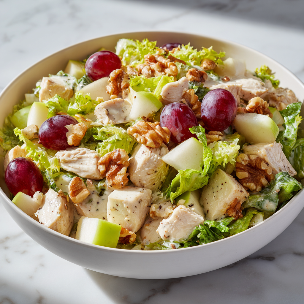 Originally created in the late 1800s, Waldorf salad has remained popular for generations thanks to its simple yet elegant flavors. Adding chicken transforms the traditional fruit-and-nut salad into a satisfying main dish, perfect for lunch, picnics, light dinners, or meal prep.