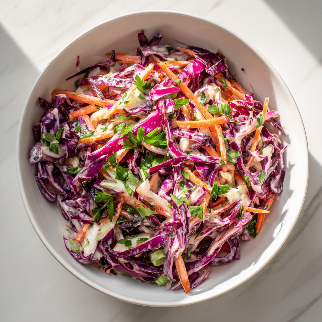 Bright, crunchy, and bursting with color, Creamy Red Cabbage Slaw is a refreshing side dish that adds flavor and texture to almost any meal. With its crisp cabbage, creamy dressing, and subtle tang, this slaw is the perfect balance of fresh and indulgent.
