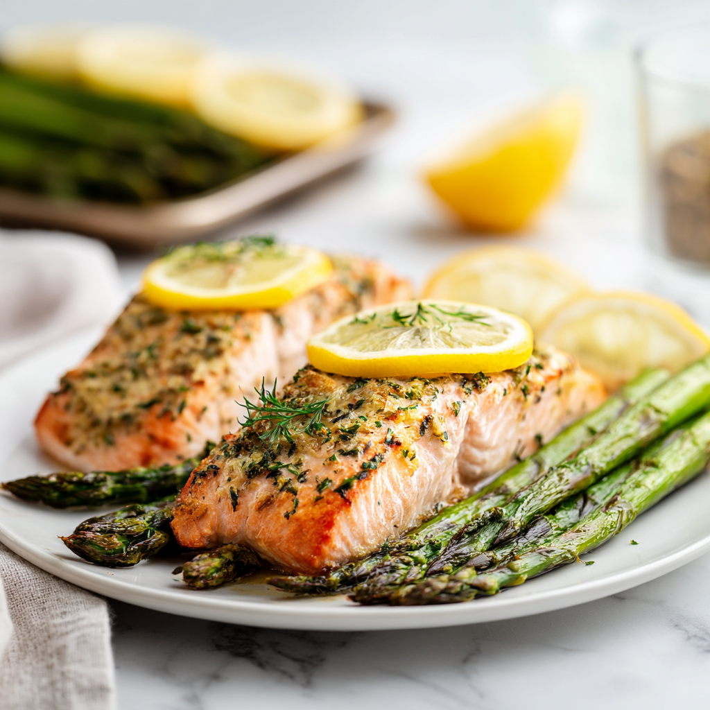 This recipe combines tender, flaky salmon infused with bright lemon and aromatic herbs, paired with perfectly roasted asparagus. The result is a dish that feels light yet satisfying, packed with nutrients and bold, fresh flavors.