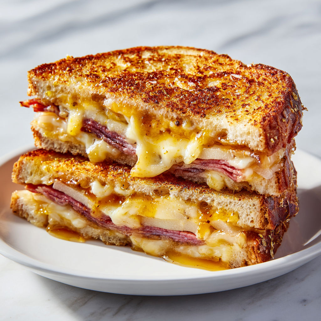 Hot Honey Apple Cheddar Beef Bacon Grilled Cheese