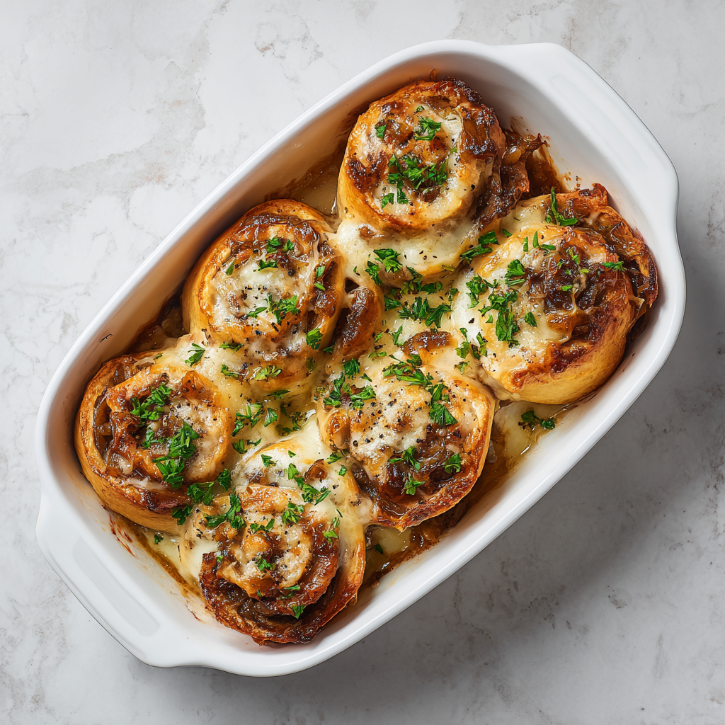 These Caramelized Onion Roast Beef Rolls are everything comfort food should be—warm, cheesy, savory, and completely irresistible. They combine the flavors of a classic roast beef sandwich with the buttery flakiness of baked crescent rolls for a recipe that feels both cozy and impressive.