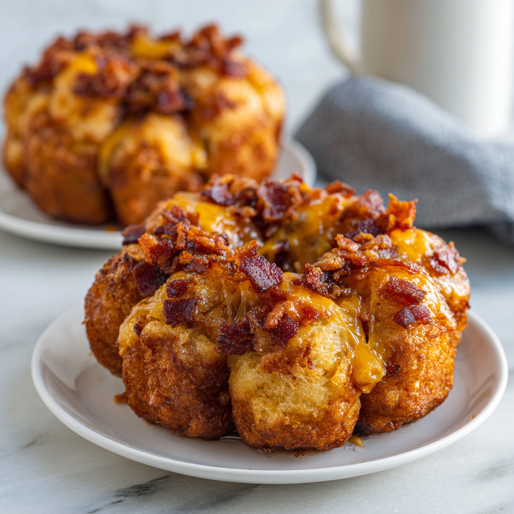 This Savory Breakfast Monkey Bread is everything brunch should be—warm, cheesy, buttery, and impossible to resist. It combines the fun pull-apart style everyone loves with classic breakfast ingredients like bacon, cheddar, and fluffy biscuit dough.