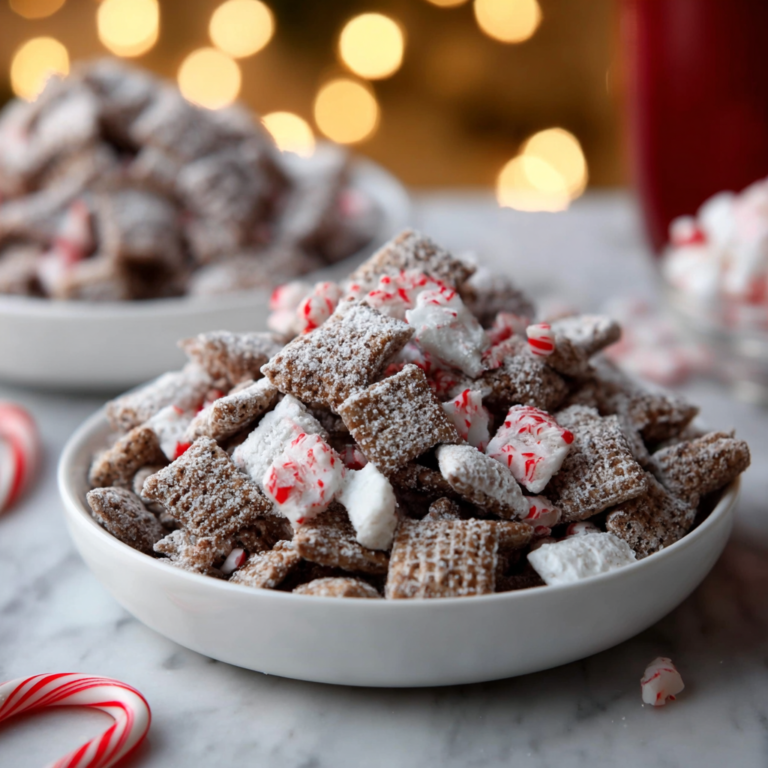 Easy Peppermint Puppy Chow, also known as Peppermint Muddy Buddies, is a festive twist on the classic no-bake snack mix that everyone loves. Crunchy cereal pieces are coated in smooth white chocolate, tossed in powdered sugar, and finished with crushed…